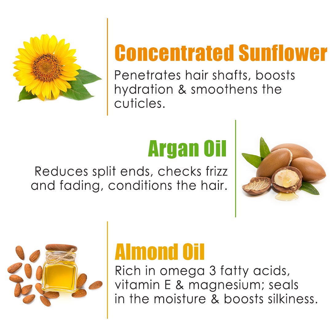 Seals the split ends & provides extra nourishment & gloss to the hair & scalp