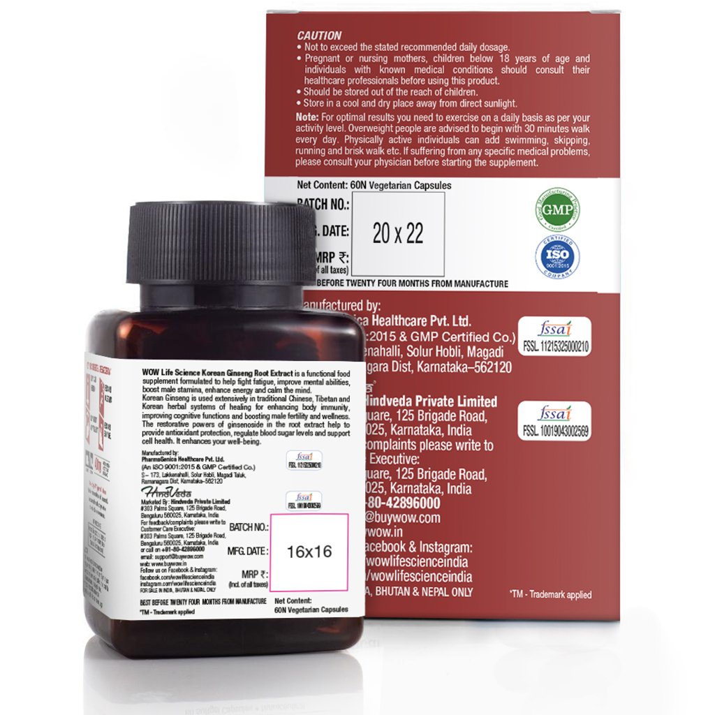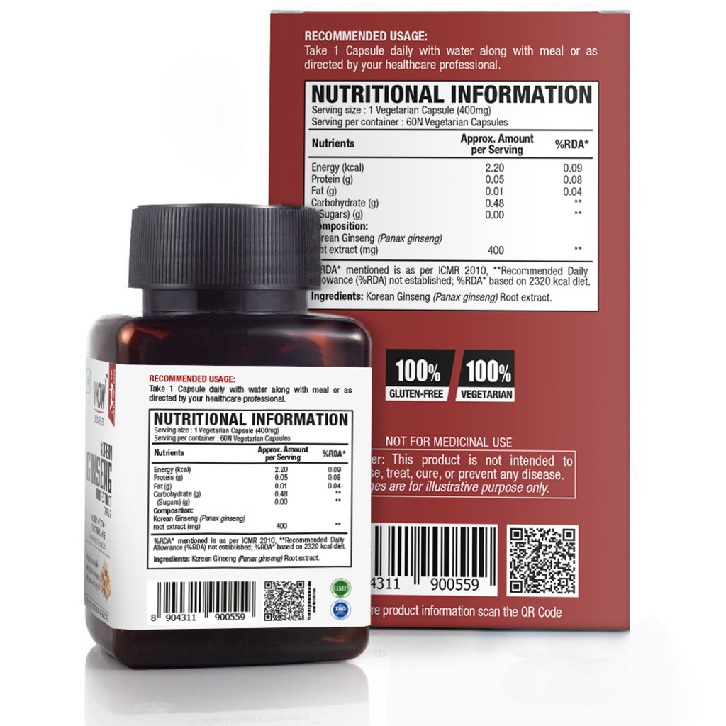 - Every capsule packs 500 mg of pure and unadulterated Korean Ginseng Root Extract.