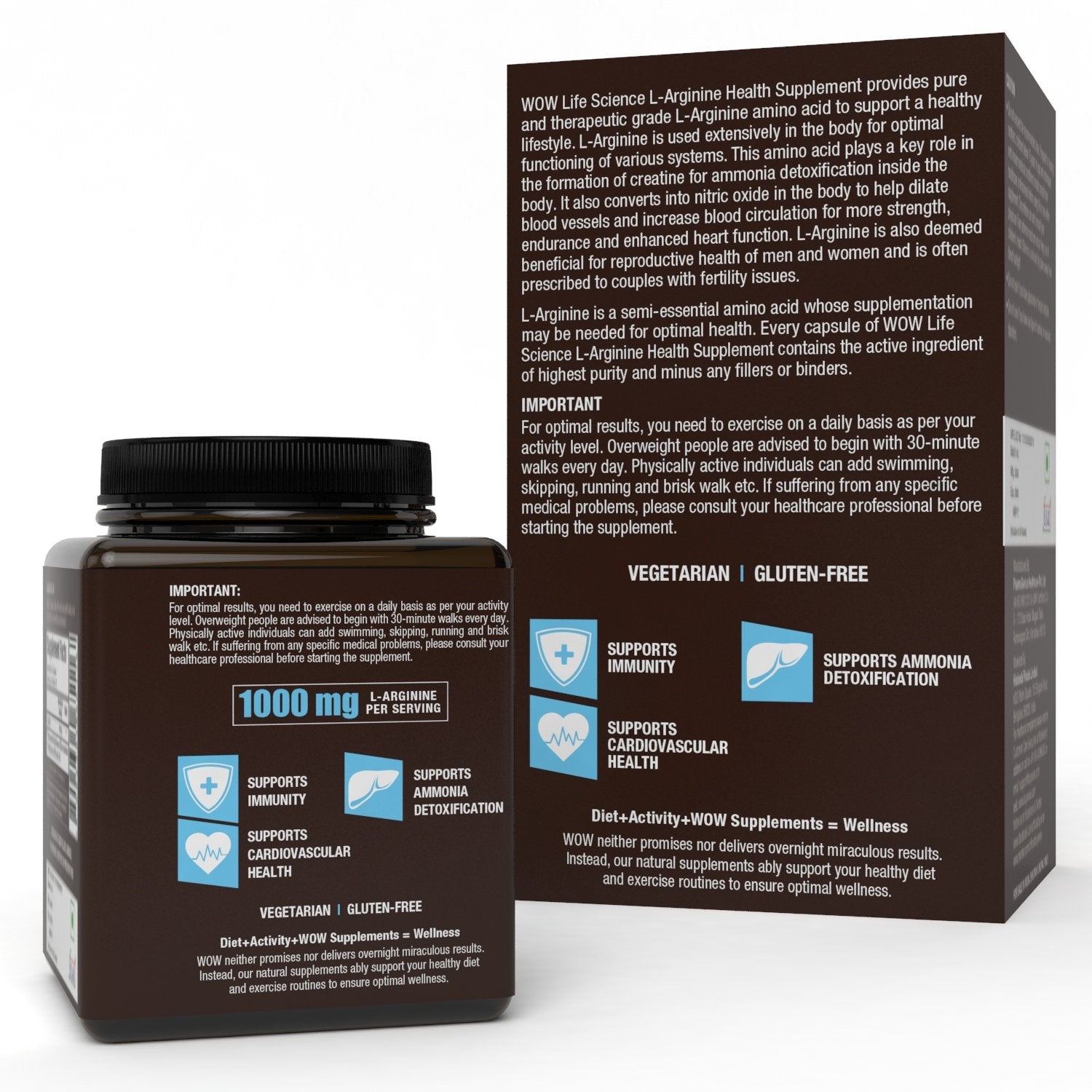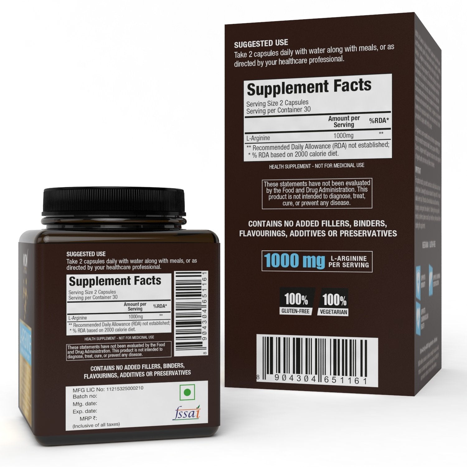 L-arginine is a chemical building block of our body called an "amino acid." It is obtained from our diet and is necessary for our body to make proteins. It is used extensively in our body for ensuring the optimal functioning of various systems. L-arginine gets converted into nitric oxide inside the body. Nitric oxide causes blood vessels to open wider for improved blood flow and better circulation contributes to improved overall health.