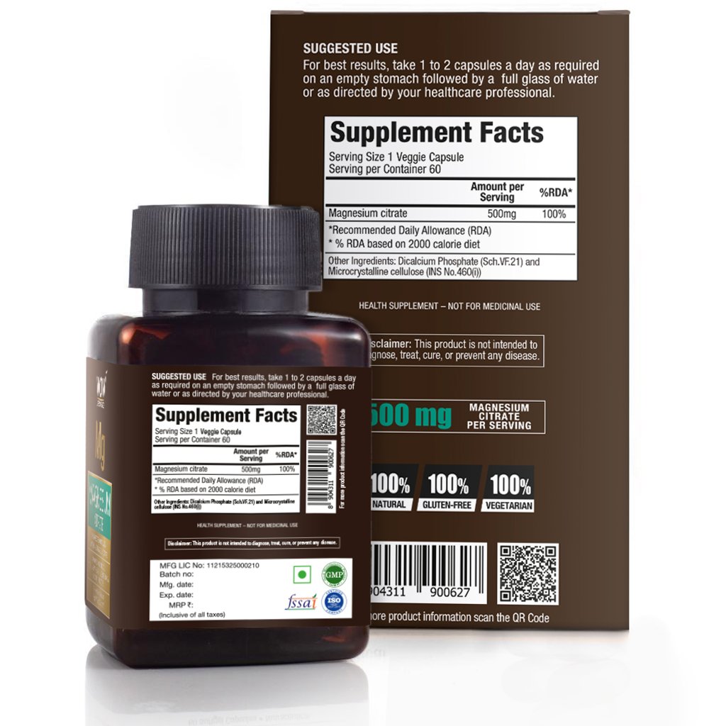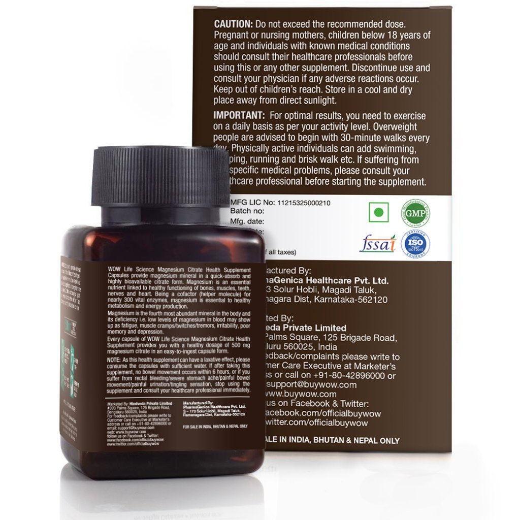 WOW Life Science Magnesium Citrate 500mg - 60 Vegetarian Capsules