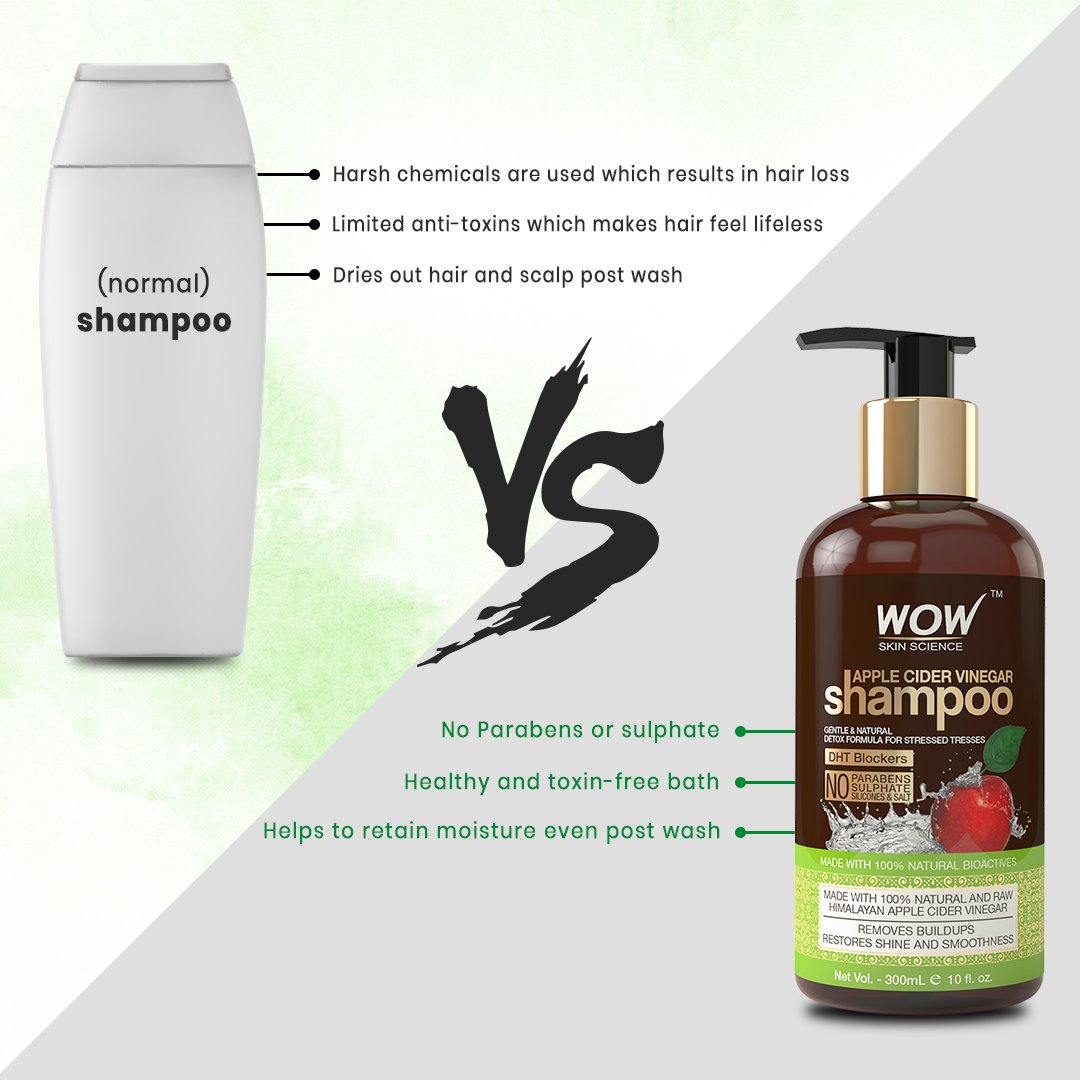 Powered with 100% pure, unfiltered and unpasteurized Apple Cider Vinegar, Sweet Almond Oil and Argan Oil; it helps gently detoxify the hair & scalp by clearing up the buildups caused by dust, pollution, dead scalp cells and styling products. WOW Skin Science Apple Cider Vinegar Shampoo does not contain any harmful chemicals like Sulphates or Parabens.