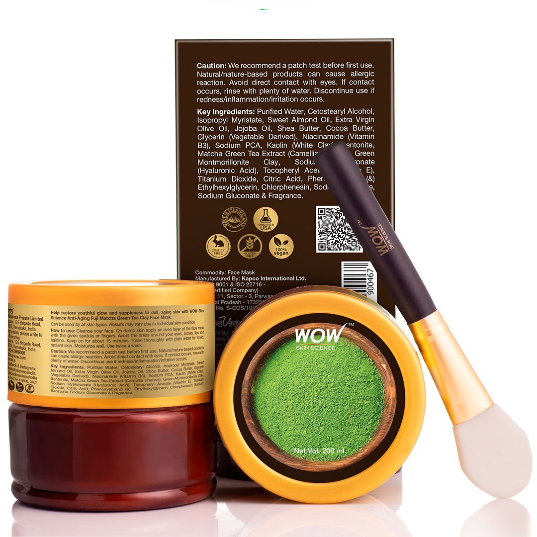 Help restore youthful glow and suppleness to dull, ageing skin with WOW Skin Science Anti-Aging Fuji Matcha Green Tea Clay Face Mask. It helps to draw out deep-seated impurities and remove dead skin cells. This helps to refine and minimize pores. The mask helps to fade age spots and even out patchy skin tone, giving you a clear, smooth complexion. It clarifies skin and removes dullness. It aids in restoring skin’s natural moisture levels that improve skin elasticity and suppleness.