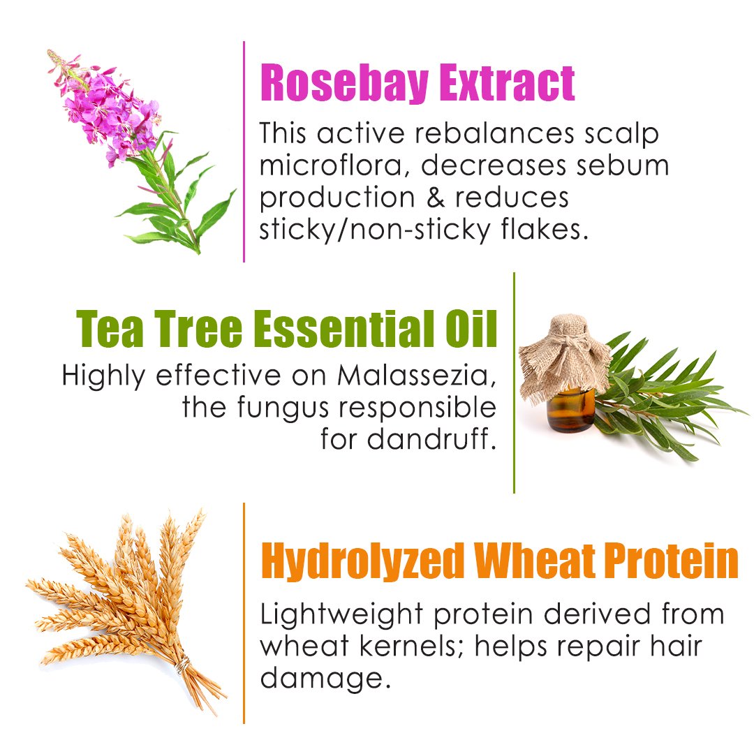 - Controls dandruff by balancing scalp microflora, reducing scalp oiliness and regulating scalp’s inflammatory response to neutralize Malassezia, the fungus that causes dandruff.
