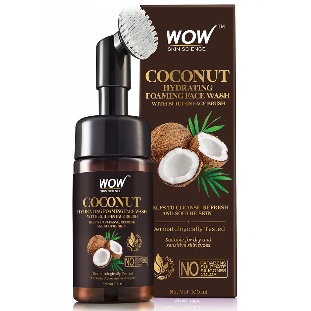 WOW Skin Science Coconut Hydrating Foaming Face Wash with Built-In Face Brush - with Coconut Water - For Cleansing, Soothing Skin - No Parabens, Sulphate, Silicones & Color - 100 ml