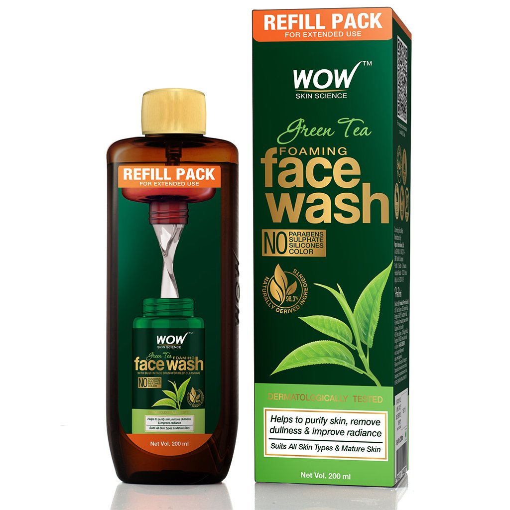 Never worry about running out of your favorite WOW Skin Science Green Tea Foaming Face Wash with the Refill Pack. Extend your skincare routine and fill up your existing foaming face wash bottle from this pack. This lets you have great skin while being more responsible towards planet earth. You are able to reduce your carbon footprint because 30% of the material of this bottle is PCR (Post-Consumer Recycled), which helps us to make recycling easier and reduce the impact on landfill and garbage disposal system.