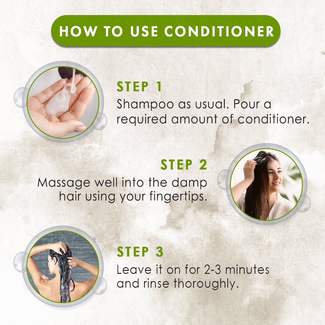 Pour a dollop of conditioner on to your palm. Massage gently on to the length of damp hair till the ends. Avoid application on the roots, unless you have dry scalp & hair.