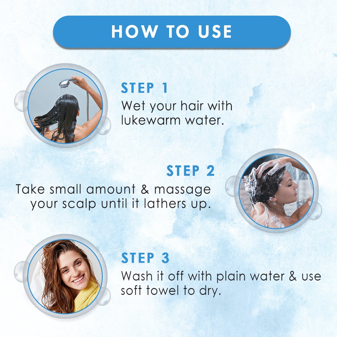 Apply a generous amount of the shampoo as per the length and volume of your hair. Massage all over scalp and tresses gently with fingertips for 2-3 minutes. Wash with plenty of plain water.