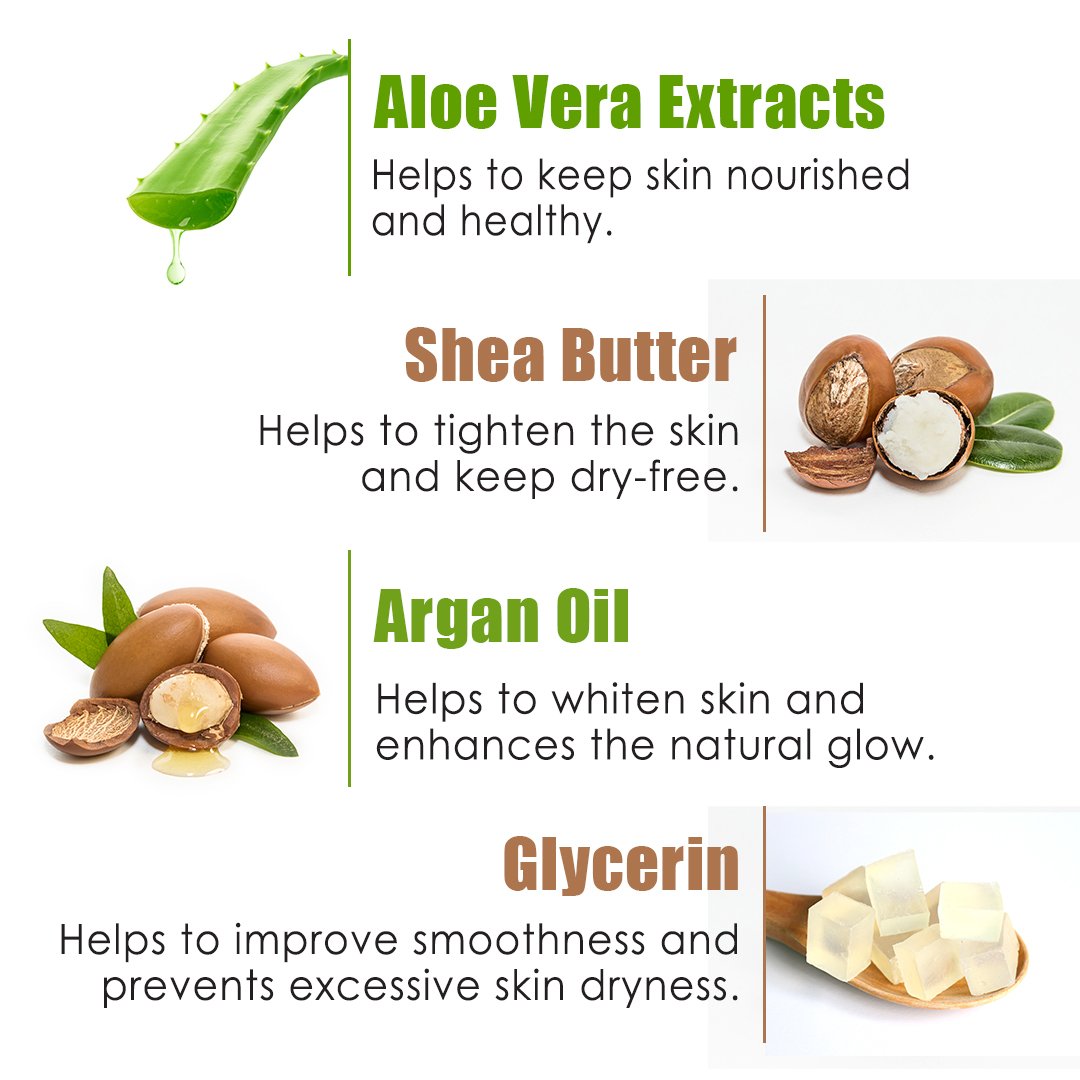 • Contains no harmful sulphates, parabens, mineral oils, silicones, color or salt. Nothing but healthy skin benefits in every drop.