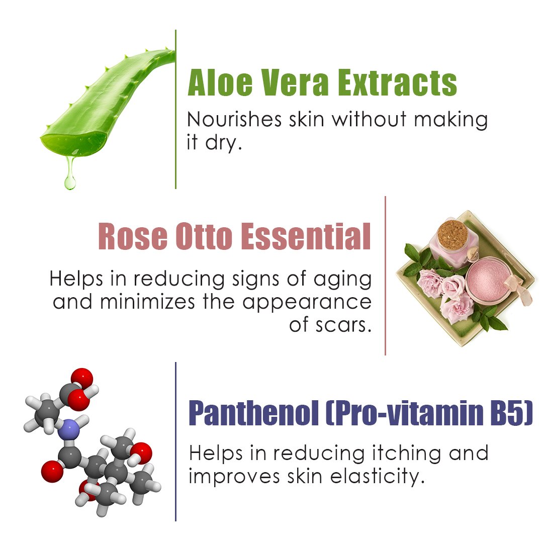 - Powered with Rose Otto Essential Oil, Shea Butter & Vitamin E – all prized bioactives known and trusted for enriching skincare.