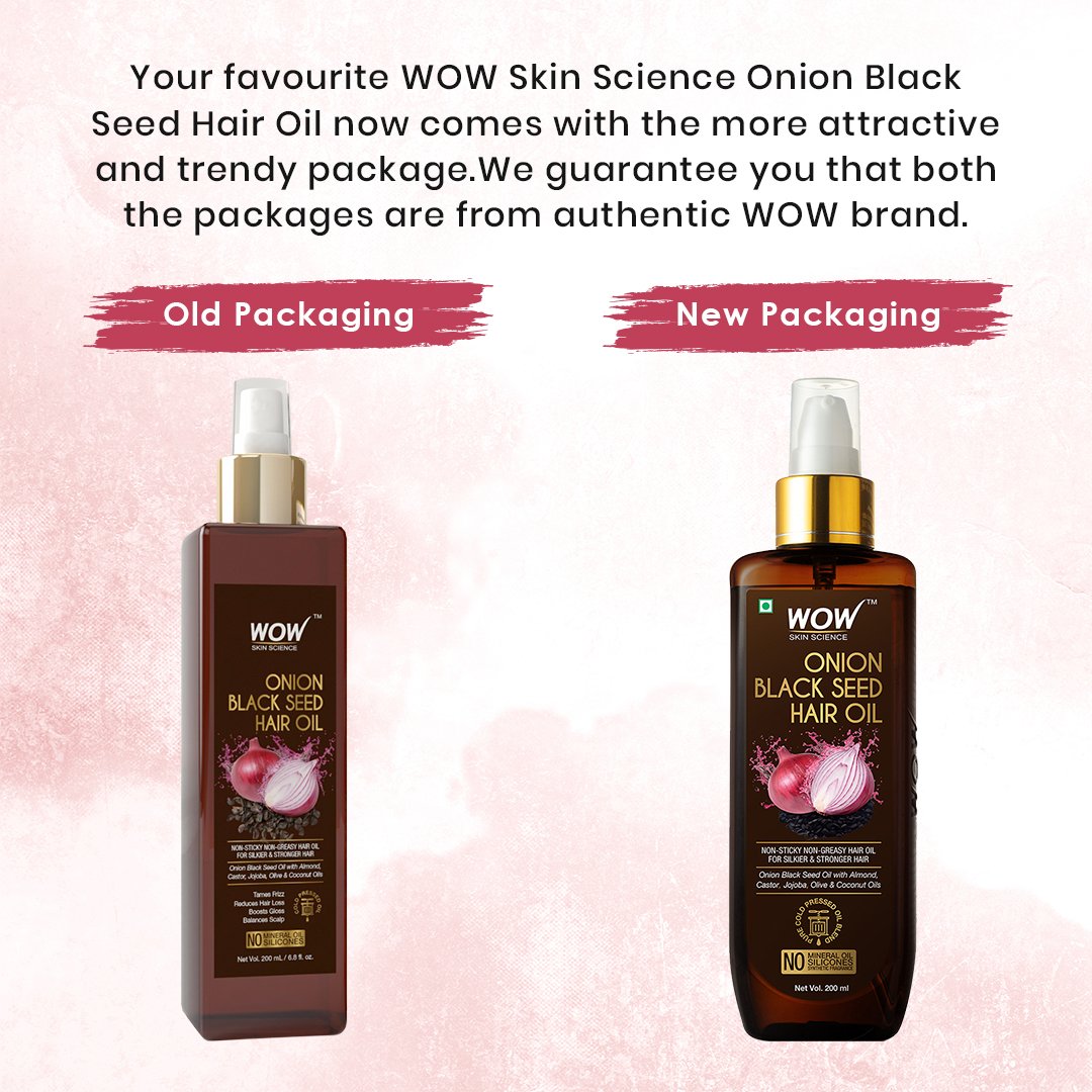 WOW Skin Science Onion Black Seed Hair Oil - Controls Hair Fall - No Mineral Oil, Silicones & Synthetic Fragrance - 200 ml