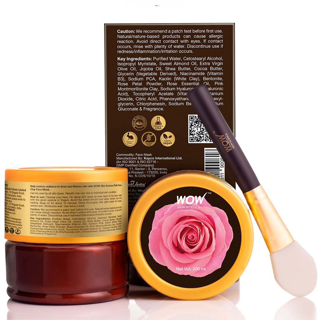 Help restore radiance to tired and lifeless skin with WOW Skin Science Pink Rose Clay Face Mask. The mask helps to tone and firm your skin improving its texture and appearance. It helps to draw out deep-seated impurities and remove dead skin cells. It soothes dry, dehydrated skin and boosts blood circulation to the skin. The mask helps to fade age spots and even out patchy skin tone and restores radiance to dull aging skin. It not only minimizes fine lines but also polishes your complexion, giving it a dewy radiance.