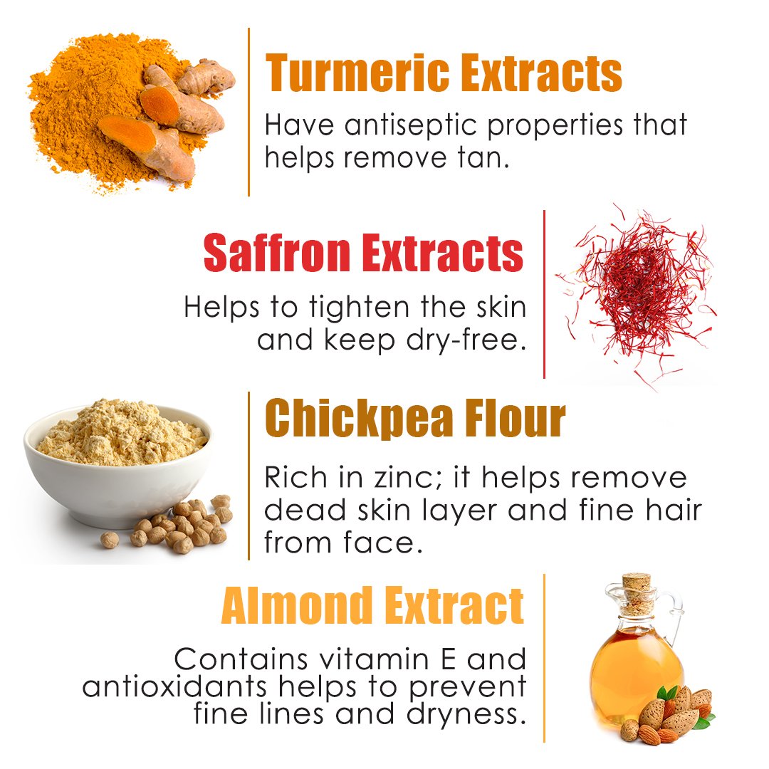 - Helps to remove dirt from the skin, lighten tan and even out complexion.