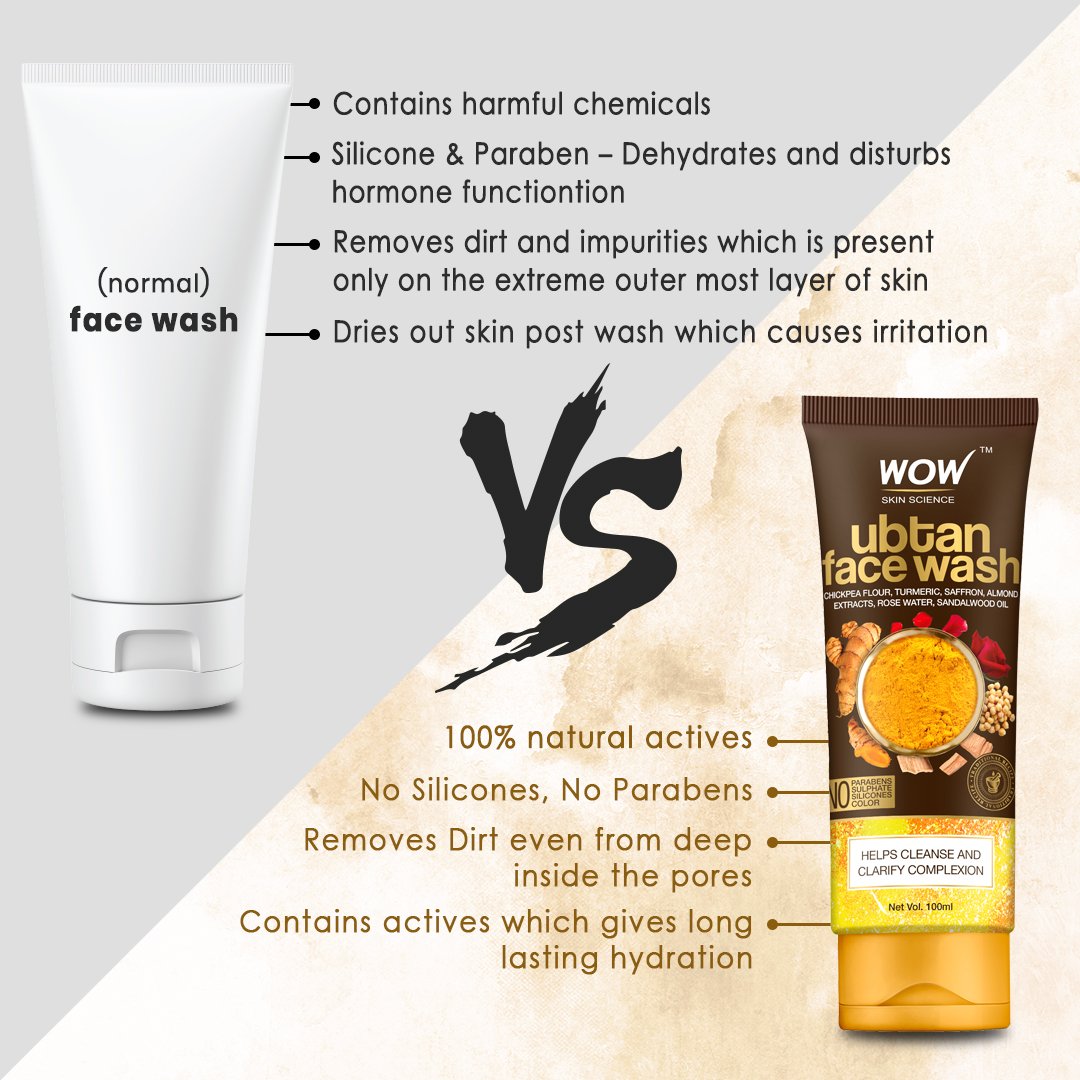 Cleanse and clarify complexion with WOW Skin Science Ubtan Face Wash. This face wash has a blend of natural ingredients that aids in removing deep-seated dirt and lighten patchy skin tone. It also helps to moisturize skin and even out complexion. It helps to tone and moisturize and protect skin from environmental damage. It supports in removing skin imperfections, control excess oil and soothe skin. It is infused with Almond Extract, which contains vitamin E and antioxidants, it helps exfoliate and prevent fine lines and dryness. Rose water oil Mineral rich skin coolant and toner, helps firm up the skin, even out complexion and give it a soft glow. Chickpea Flour aids in removing dead skin layer and fine hair from face. It can be used to help make skin look healthy and bright. Suitable for all skin types, this face wash can be used to restore skin’s natural radiance and suppleness.