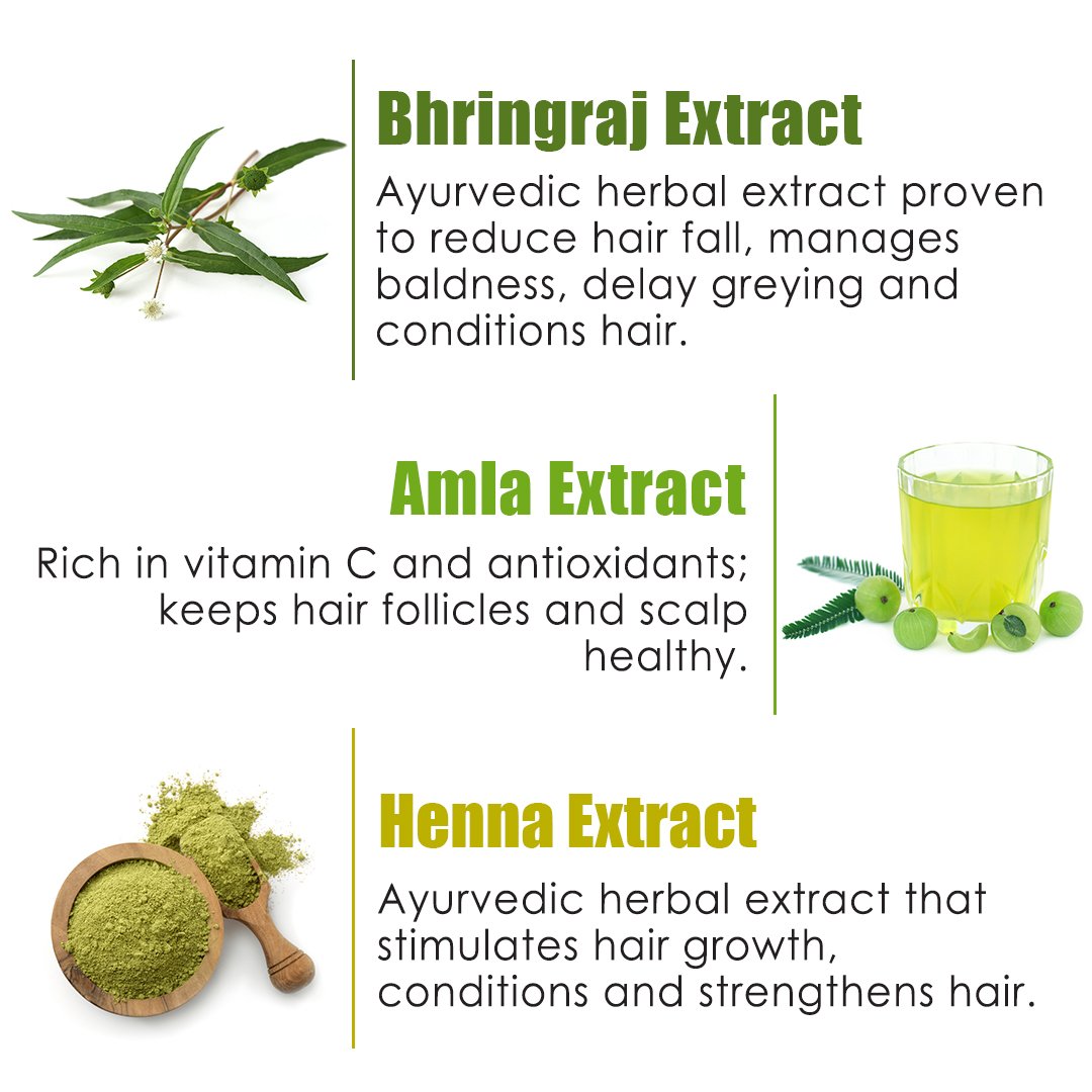 Amla Extract - Ayurvedic herbal extract rich in vitamin C and antioxidants, keeps hair follicles and scalp healthy.