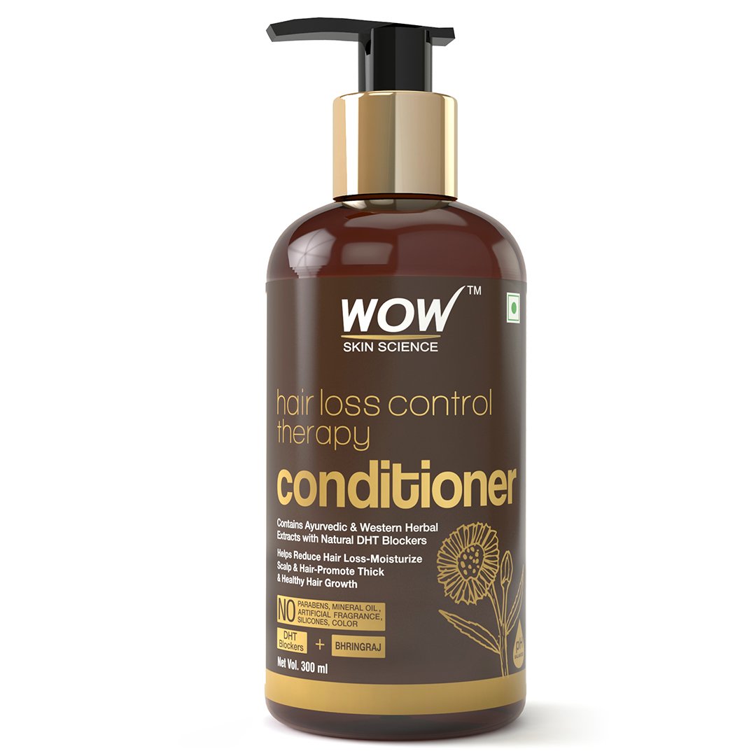WOW Skin Science Hair Loss Control Therapy Conditioner provides advanced and powerful anti-hair loss action that reduces hair fall by naturally blocking the DHT hormone responsible for hair loss. Its powerful formulation contains ayurvedic herbal extracts of Bhringraj, Amla, Neem, Henna, and Shikakai; western herbal extracts of Lemon, Biotin, Rosemary, Saw Palmetto and Niacin; along with Sweet Almond, Castor, Jojoba and Argan Oils. It conditions hair by sealing in moisture, and smoothening hair strands to keep frizz and flyaways at bay. This conditioner has been formulated as totally without parabens, mineral oils, color, fragrance, silicones, or gluten.